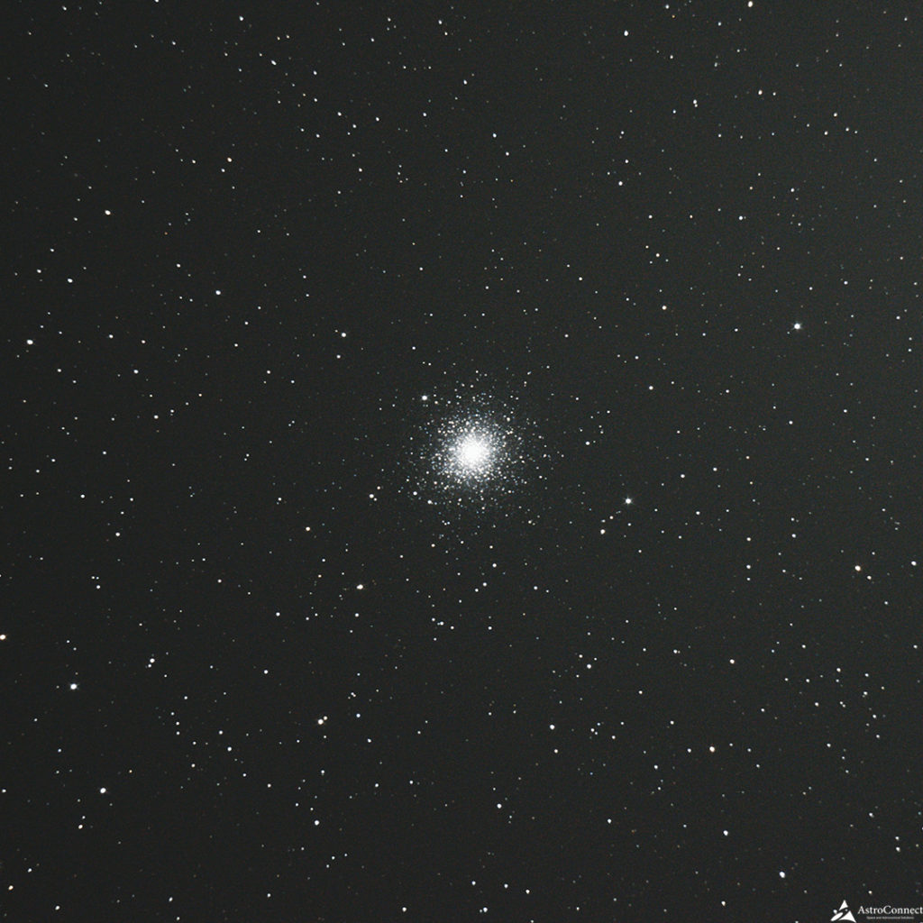 双眼鏡で星ではなく雲のように淡い感じに見えます。小型天体望遠鏡で球状星団だとわかります。