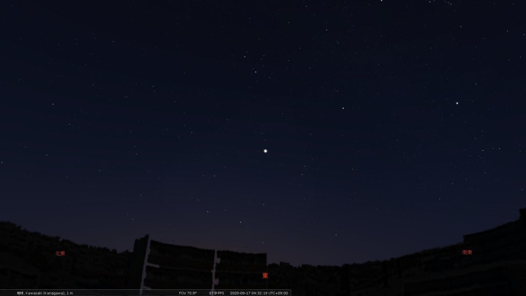 今日、明日の朝4時ごろに東の空を見ると、皆さんのこぶし3個ほどの高さに、とても明るい星が1つ見えていると思います。それが「金星」です。