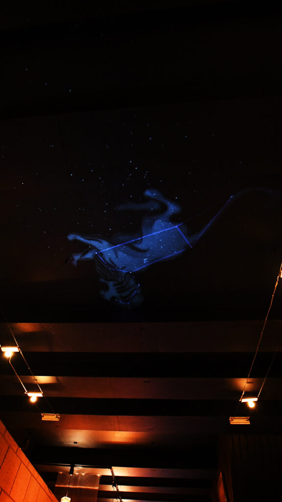以前、宇都宮にある飲食店「MEAT DINNING ZIG」様にて店内における「天井プラネタリウム」のテスト投影を行いましたが、このほど「MEAT DINNING ZIG」様にて定期的に店内天井プラネタリウムを実施する流れとなりました。