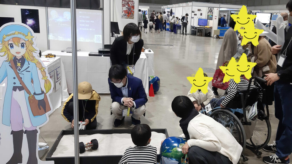 また、両日ともに盛況だったのが「月面ローバーモデル操縦体験コーナー」です。こちらは、子どもたちが、将来月面を走ることを考えるきっかけとなる「自分で考えて作れる月面ローバーモデル」の試作品操縦体験コーナーです。