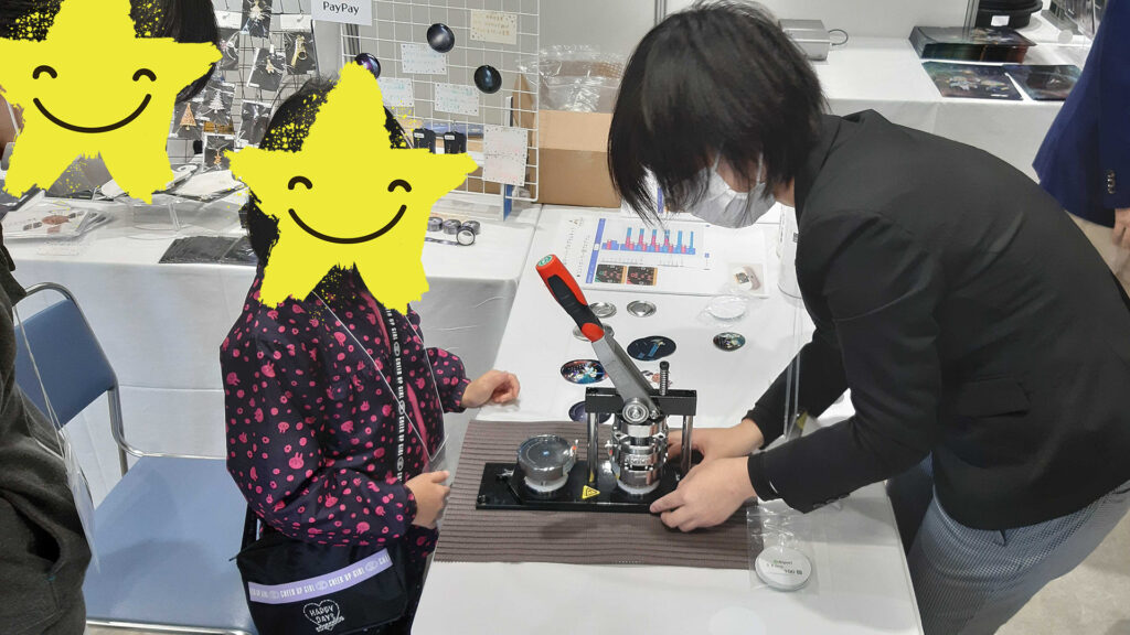 20日の一般公開日には、子どもを対象にした「オリジナル缶バッチ」製作体験コーナーを設けました。こちらは先着50名まででしたが、午前中には終了する人気のコーナーとなりました。