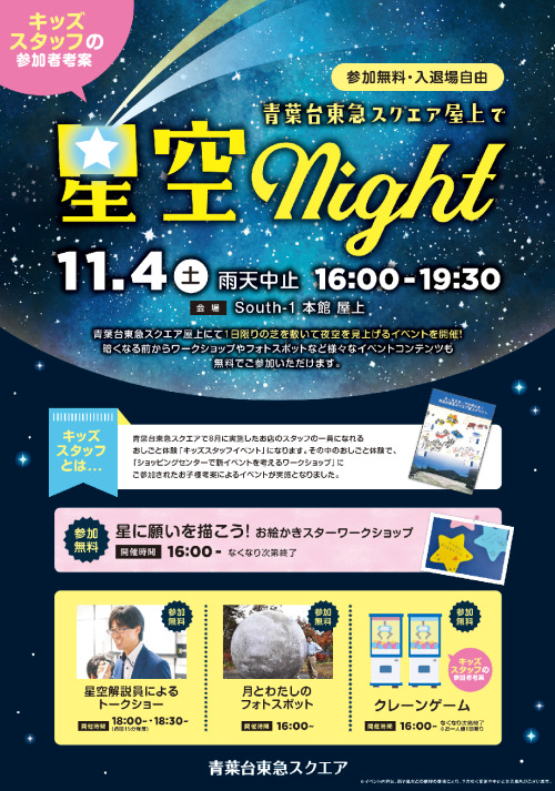 【イベント情報】青葉台東急スクエア屋上にて「星空Night」11月4日開催