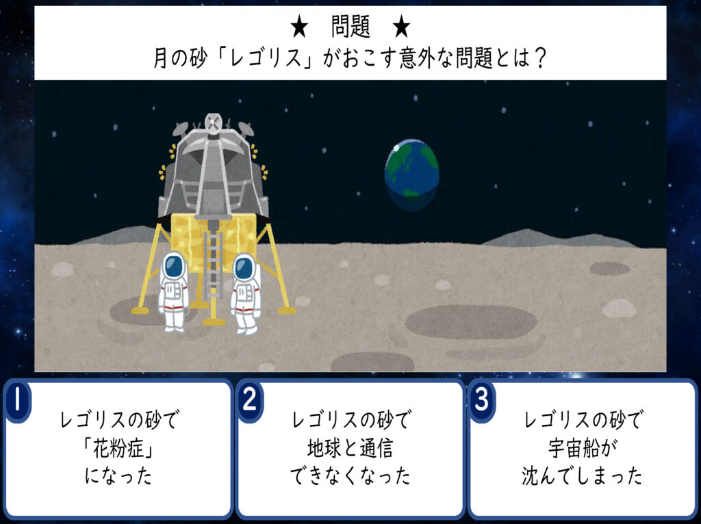 各講座では、クイズに挑戦したり、講師からの質問に答えたり、自分の好きな宇宙について、一緒に挑戦したり、考えたりすることができます。