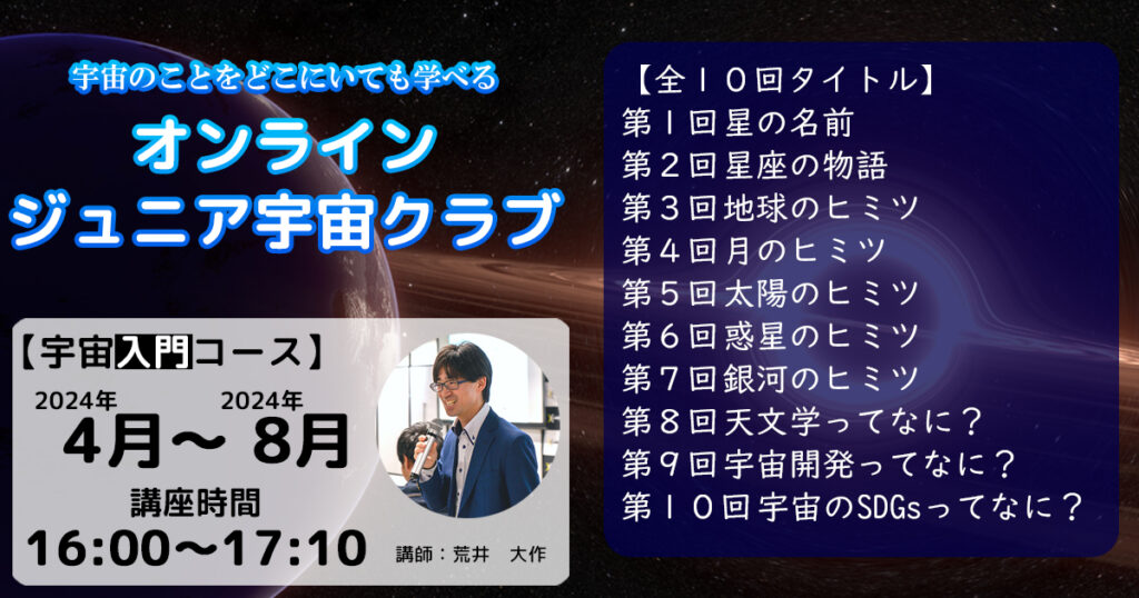 オンラインジュニア宇宙クラブ【宇宙入門コース】全10回コース★2024年4月14日スタート