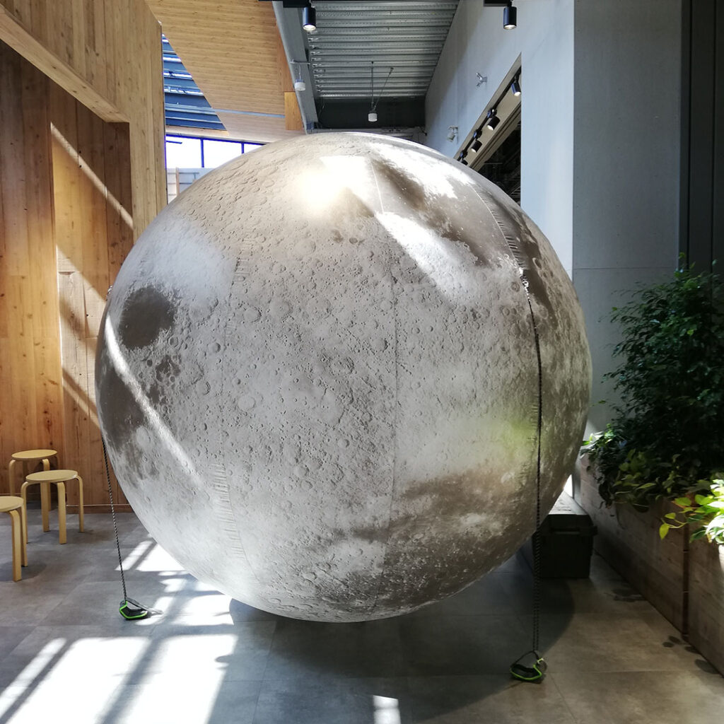 イベント開催期間中は、大型商業施設であってもイベント開催場所・開催中であることがわかるようにランドマークとしても機能し、多くの方の「フォトスポット」となる直径2.7mもある「エアムーンモデル」を設置。設置期間中は多くの家族連れが月と一緒に撮影を楽しんでいました。