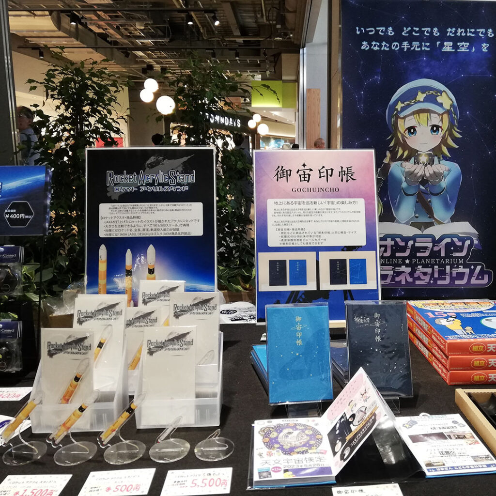 また、弊社オリジナルの宇宙グッズを販売。特に「御宙印帳」は幅広い年齢層の方から興味・関心を頂きました。