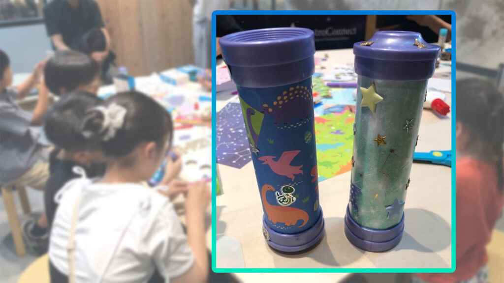夏休み期間中の8月13日には、子どもたちの自由研究にも活用できる「マイ天体望遠鏡を作ってみよう!」と題したワークショップを開催。1日3回、各回10名という定員で開催いたしましたが、当日整理券を配布する前から列ができるほどの盛況となりました。