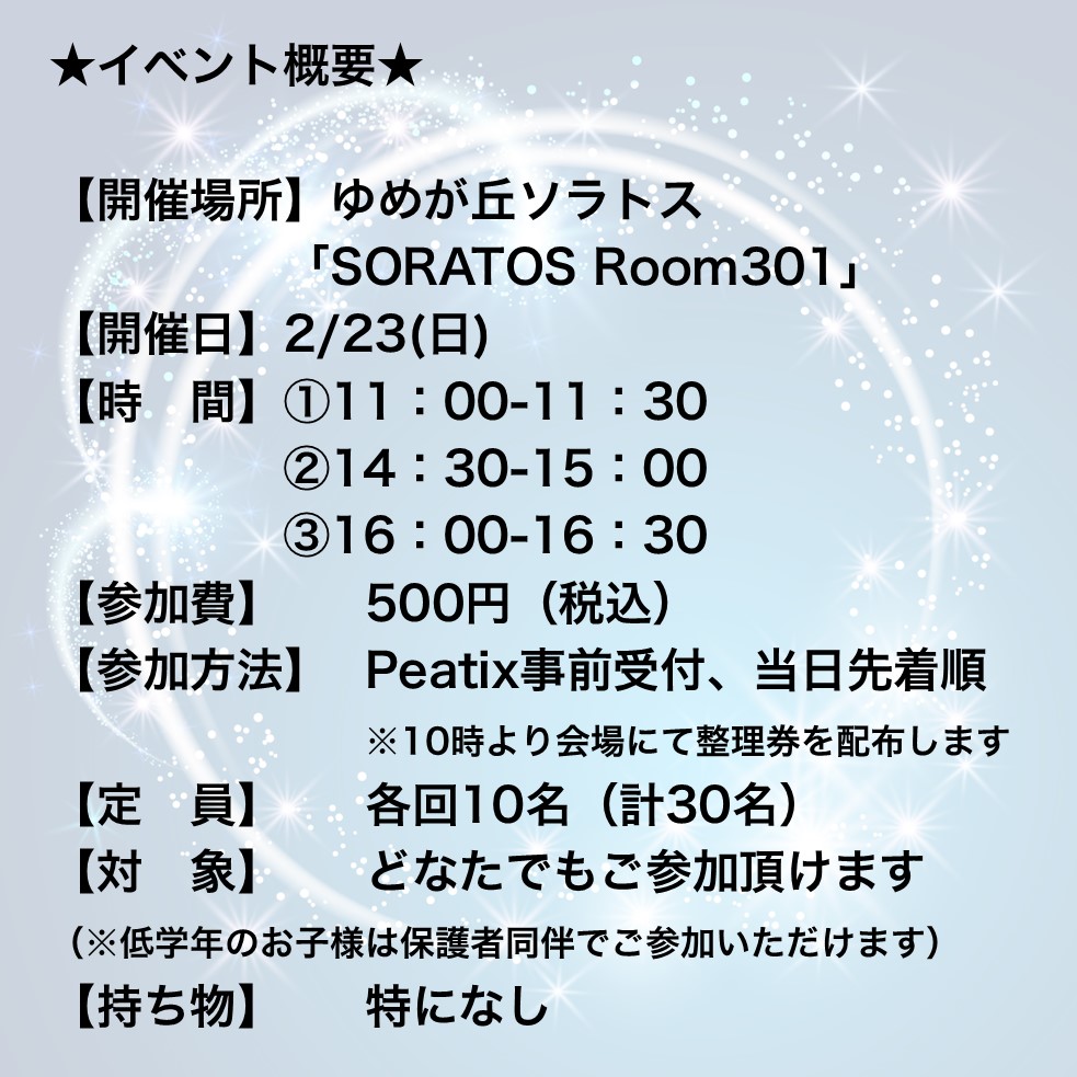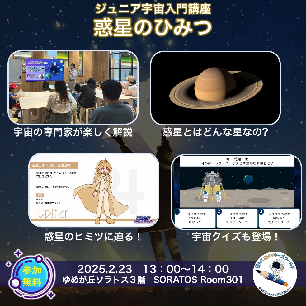 【イベント情報】「ゆめが丘ソラトス」にて宇宙を楽しむイベント「宙トス1DAYキッズワールド」2月23日(日)開催