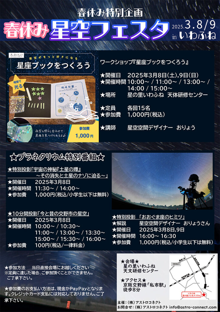 【春休み特別イベント】『春休み星空フェスタinいわふね』を3月8日~9日開催