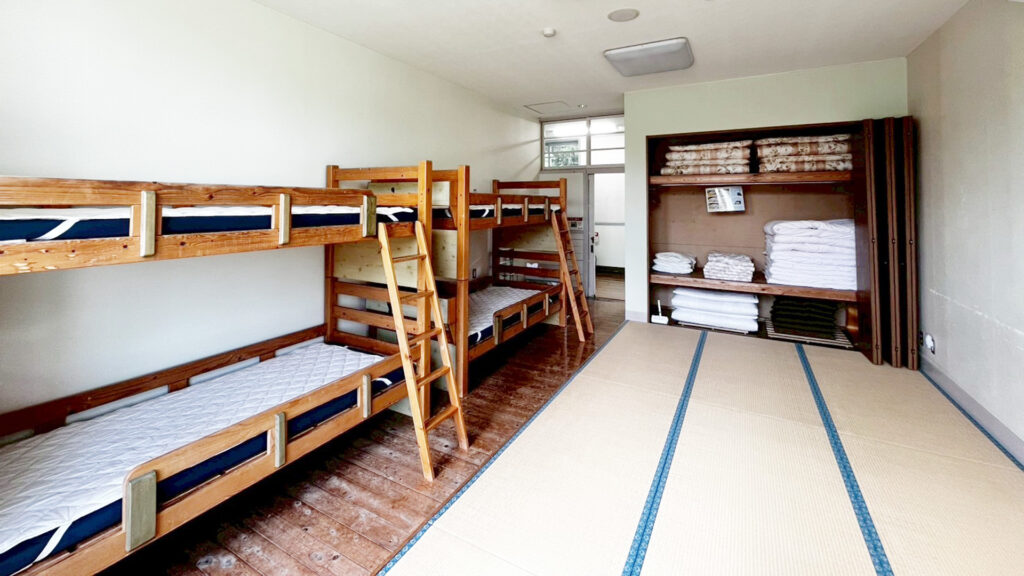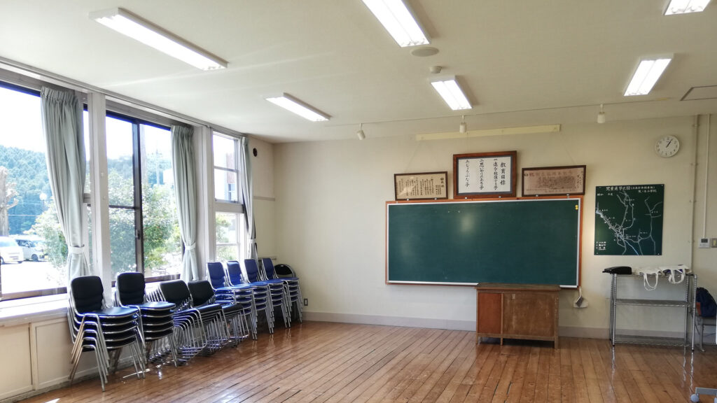 泊まる場所は元「教室」を半分にしたスペースです。夕食/朝食はとても美味しい食事を頂きました。食堂のイスが、小学校の時の「イス」だったこともあり、参加者の皆様と当時の「給食談義」に花が咲きました。