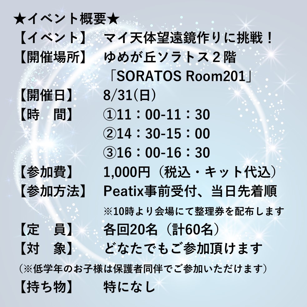 ★ワークショップに参加して、自分だけの『マイ天体望遠鏡』をゲットしよう!★
