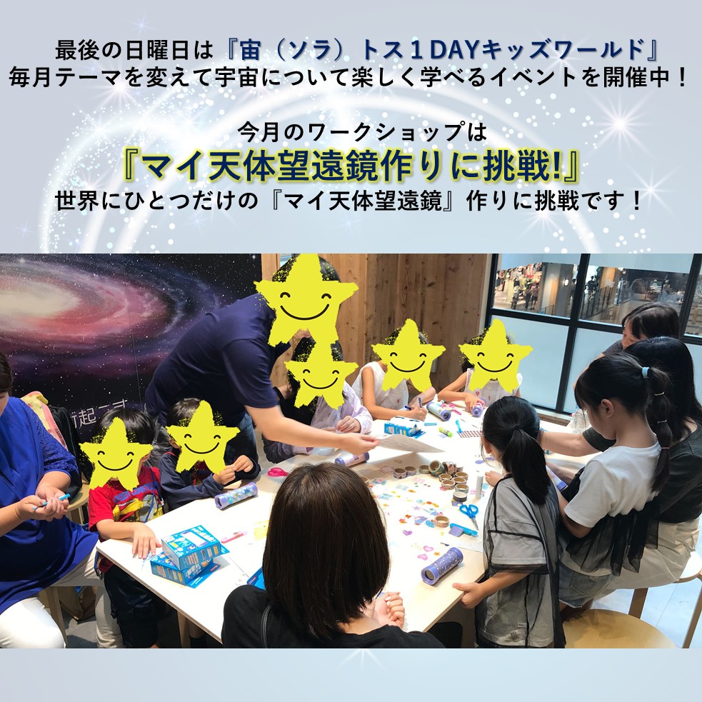 「ゆめが丘ソラトス」では、毎月最後の日曜日に、毎月テーマを変えて宇宙について楽しく学べる1日イベント『宙トス1DAYキッズワールド』を開催中。