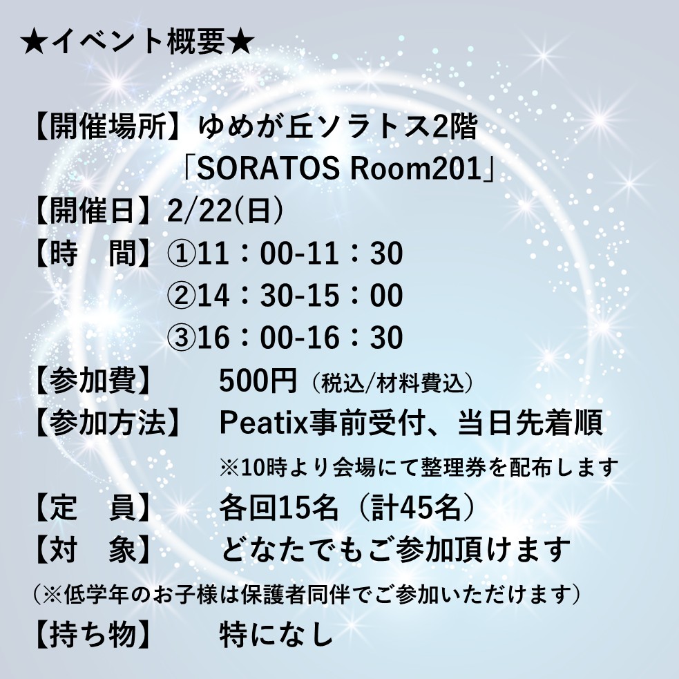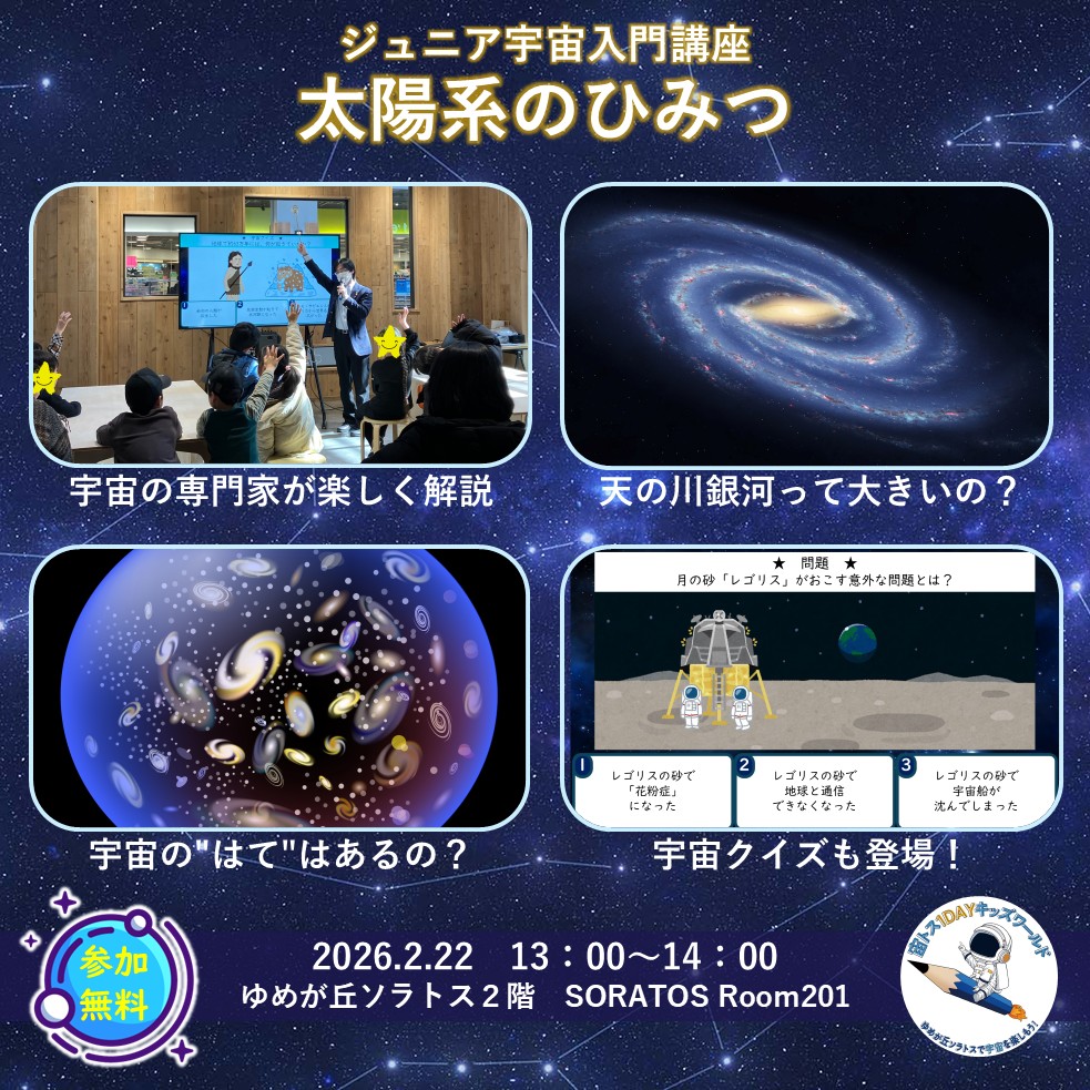 【イベント情報】「ゆめが丘ソラトス」にて宇宙を楽しむイベント「宙トス1DAYキッズワールド」2月22日(日)開催