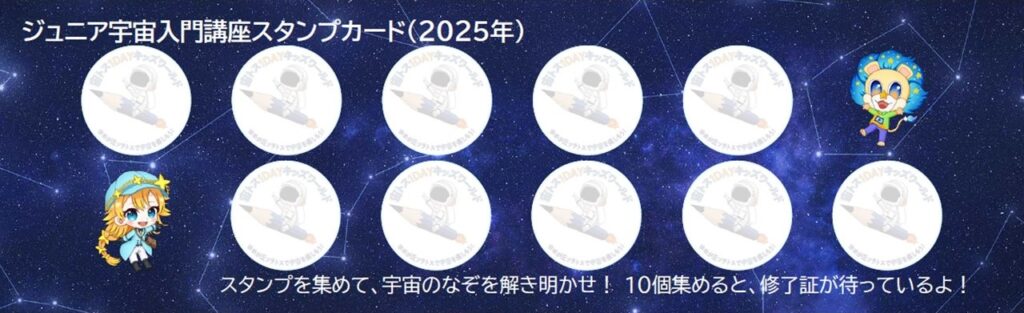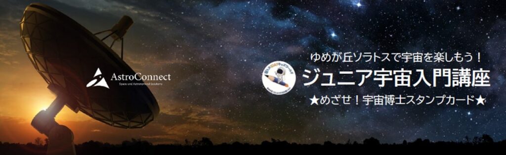 「ゆめが丘ソラトス」にて、毎月最後の日曜日、子どもたちに宇宙の楽しさやナゾを届ける「ジュニア宇宙入門講座」を全10回(特別講座を含めて全12回)開催いたします。オリジナルのスタンプカードに参加するたびにスタンプを集めて、全10回参加されると、修了証をお渡しいたします。