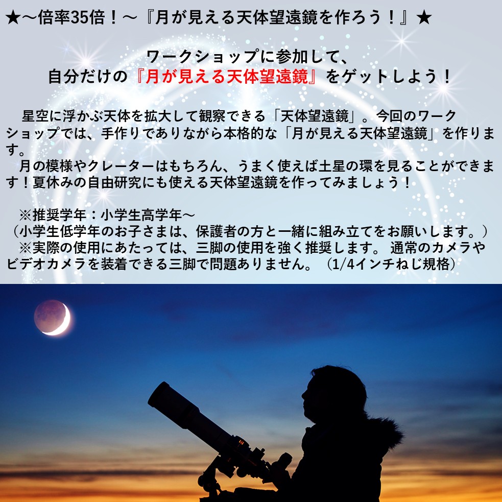 ★ワークショップに参加して、自分だけの『月が見える天体望遠鏡』をゲットしよう!★